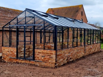 DWARF WALLS: Dwarf walls can be built in your choice of brick or stone. You can choose engineering bricks for durability or you may be able to closely match the walls of your existing property. Dwarf walls offer maximum heat retention in the winter and are ideal for growing shade-loving plants such as ferns. Our prices do not include the dwarf walls. The greenhouse frames are prefabricated so the frame sizes cannot be adjusted to fit the dwarf walls. Instead the dwarf walls must be built to precisely the right size. Bricks are ideal but irregular natural stone may require carefully cropping.