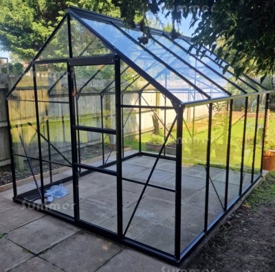 TOUGHENED GLASS: Toughened glass is the best glazing material for use in greenhouses. It is around 6 times stronger than normal glass so it is less likely to break and when it does break toughened glass breaks into harmless small pieces. This makes toughened glass the best option for all the family including children, pets and the elderly. Toughened glass also strengthens the frame and it is heavy which helps to resist wind. Although size limits apply, toughened glass panes are longer than horticultural glass, with no overlapping glass and fewer joins. Where required, joins are neat in-line H-profile joins. Greenhouse glass is subject to lower visual standards than other more expensive glass and may include blemishes or imperfections which do not adversely affect the performance.