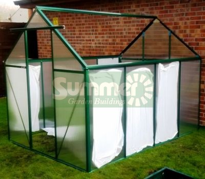 THIS POLYCARBONATE GREENHOUSE: These great value metal greenhouses feature green powder coated aluminium frames with durable twinwall polycarbonate glazing, which is normally an expensive extra. These sensationally cheap greenhouses are always in stock and the price includes fast delivery. From a technical viewpoint this greenhouse is heavier and more rigid than others at similar prices and the glazing is held in better. The precise manufacturing and careful packing is a match for our most expensive greenhouses. Sophisticated features include well retained clip free glazing, additional bracing and numerous specially designed brackets and clips to improve the strength. With such a competitive price this metal greenhouse is a popular choice with first time buyers. With the ultra safe polycarbonate glazing it is also a popular choice for the elderly and families with children or pets.