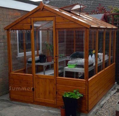 PRESSURE TREATED TIMBER: Pressure treatment is a lifetime preservative treatment. The preservative is forced deep into the timber under pressure in a vacuum and penetrates below the surface. All other treatments apply a coat of stain to the surface of the timber only. With pressure impregnated timber, the chemicals are permanently bonded to the cell structure of the wood at a molecular level. Tanalith E is a widely used water based version so pressure treated wood is often described as tanalised. Pressure treated wood is almost colourless except for a slight green tint caused by the copper content in the preservative, though if you want a coloured finish you can paint over pressure treated or tanalised wood with a suitable wood preservative in any colour. Please note that whilst no further anti-rot treatment is ever needed, the timber is still subject to seasonal variation when exposed to the elements and so will expand and contract as it gets hot/cold, wet/dry, etc. For this reason, the timber may benefit from periodically applying a good quality waxy wood treatment to help ensure the building stays fully watertight all year round.