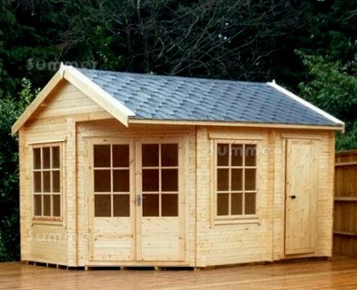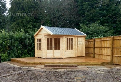 CORNER BUILDING SIZES: For ease of reference these corner log cabins are measured as a rectangle based on the width of the two longest walls. The first dimension listed is the depth which is the shorter dimension. The second dimension is the length which is parallel to the ridge. Sizes are sometimes rounded to the nearest nominal size for ease of reading but the correct external wall sizes are listed alongside the price. These sizes do not include the roof overhang. Many other suppliers quote the overall roof size which is much larger. All sizes are approximate.