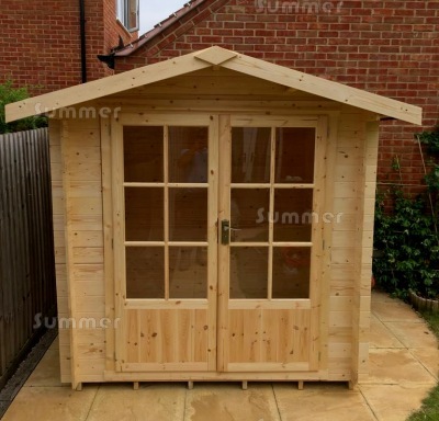 NATURAL WOOD: First, high grade timber is dried in kilns until it reaches the optimum moisture content, then it is planed smooth and machined into tongued and grooved logs and boards. Next the logs are precisely machined at the ends to ensure a precise fit. Finally, each cabin is carefully packed and wrapped. When you unwrap it the wood is untreated. We recommend treating it only after the cabin has been successfully installed and ideally within a week or two. Treating the logs before fitting may cause the wood to swell up and the logs may not fit together correctly. If you are fitting your cabin in a restricted space where future access will be difficult you can stain the logs during installation by reaching down a few logs at a time as you fit them.