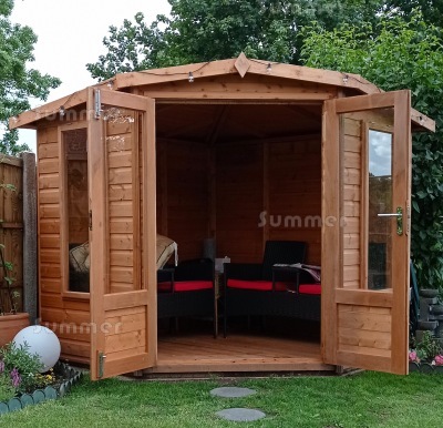 Based on average coverage five litres of our 4 star preservative is enough for two coats on an 8'x10' shed or an 8'x8' log cabin. Ten litres is enough for three coats on a 10'x16' shed or a 12'x10' log cabin. Coverage varies according to the smoothness of the surface and the porosity of the timber. We recommend that you order more than you need to be sure that you have easily enough. All of these preservatives are safe for use with children and pets. These microporous preservatives are only available when you purchase a Summer garden building or if you purchased a Summer building in the past. Prices include free mainland delivery to England, Wales and southern Scotland. Colours are only as accurate as reproductive techniques allow.